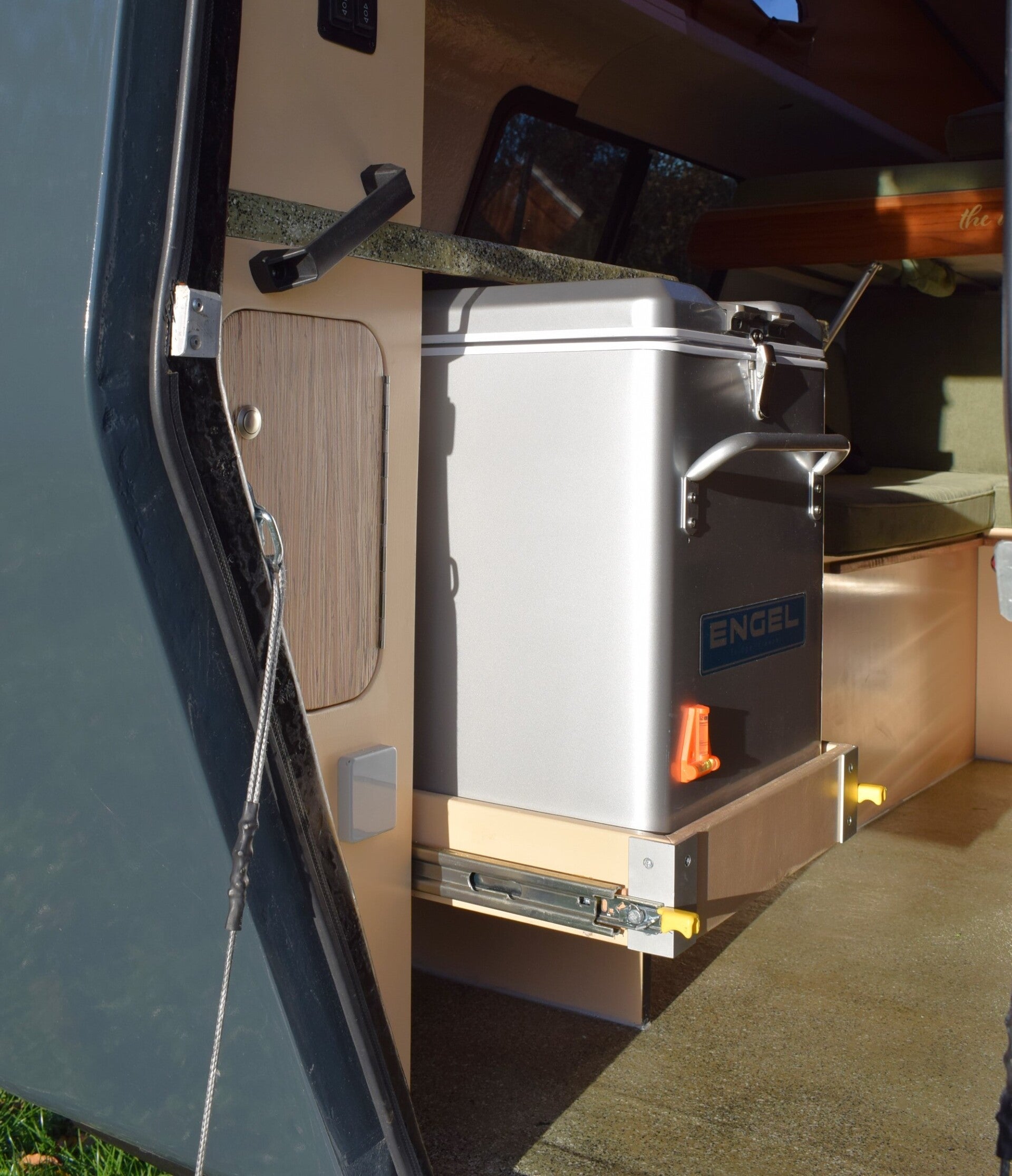 - De Engel bovenlader koelkast zit in een lade systeem. Daaronder nog een open ruimte (ruim 70 cm diep). Mooi plekje voor onze Weber BBQ.